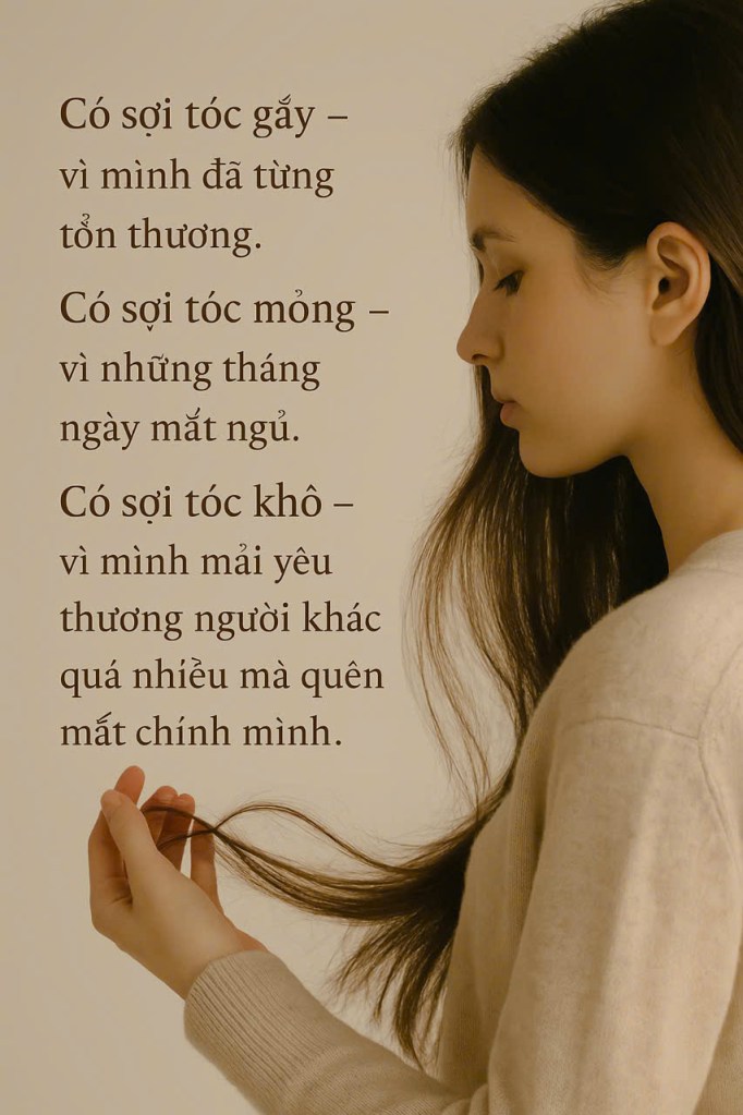 Có sợi tóc khô – vì mình mải yêu thương người khác quá nhiều mà quên mất chính mình.